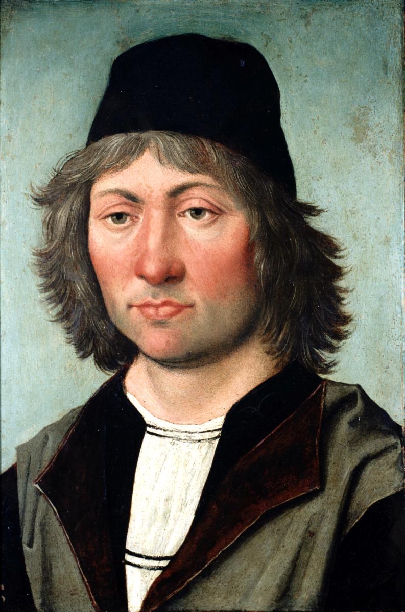 - Autorretrato de Pedro Berruguete; joven, de tres cuartos a la izquierda tocado con birrete negro y vestido sobre camisa blanca con ropilla negra y casaca gris con vueltas en cuello y mangas de piel de pelo corto marrón. En su reverso lleva escenas del llanto de la Virgen, Magdalena y San Juan, del cuerpo de Cristo al pie de la cruz, de mala mano española.